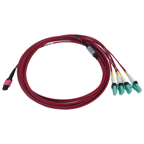 Tripp Lite N845X-05M-8L-MG 40/100G Multimode 50/125 OM4 Fiber Optic Cable (12F MTP/MPO-PC to 4x Duplex LC/PC F/M), LSZH, Magenta, 5 m (16.4 ft.)